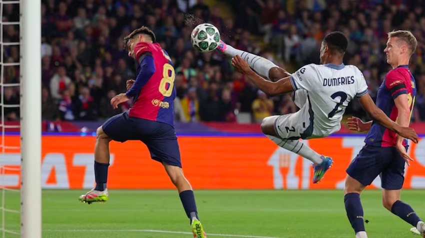 Al 63′ Dumfries consiguió su doblete gracias a un cabezazo en el área blaugrana, pero el descuento llegó a los 2 munitos (65′) luego de un trallazo de Raphinha desde fuera del área que pegó en el travesaño y el rebote chocó con Sommer, quien marcó en su propia puerta.