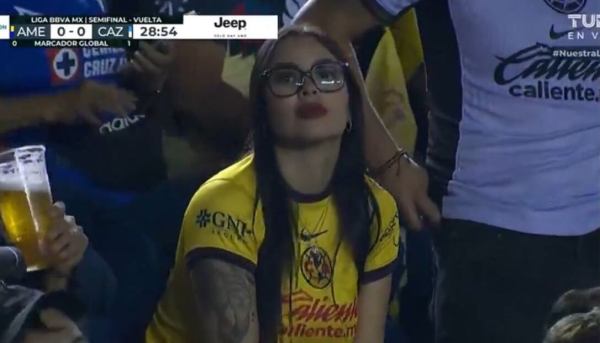 Foto tomada de la Red (Tomado de la Red) Durante el duelo entre América y Cruz Azul de este domingo, las cámaras de televisión la captaron en varias ocasiones a lo largo del partido a una joven que portaba su jersey amarillo de las Águilas y también portaba uno lentes negros y los labios pintados... Leer más →